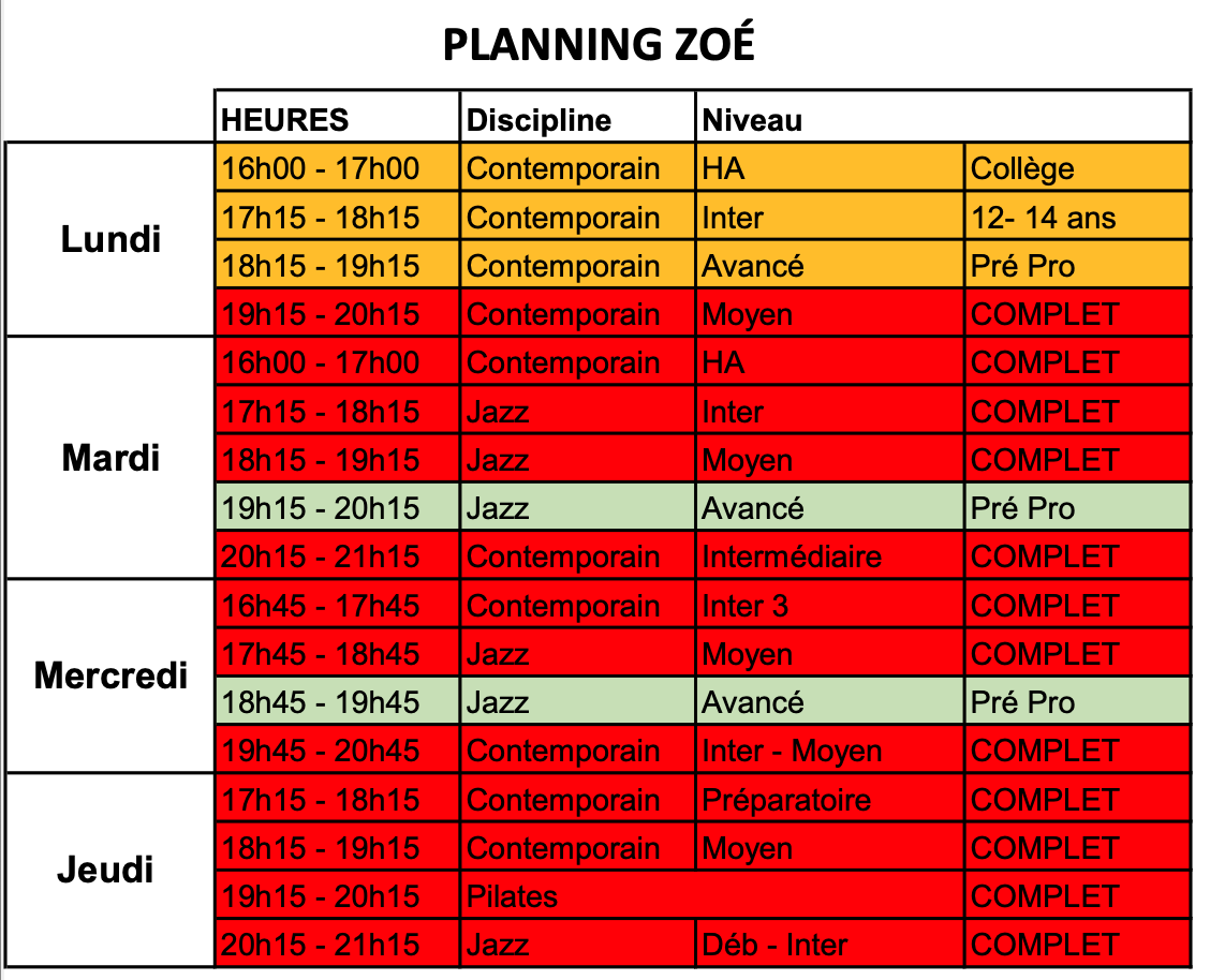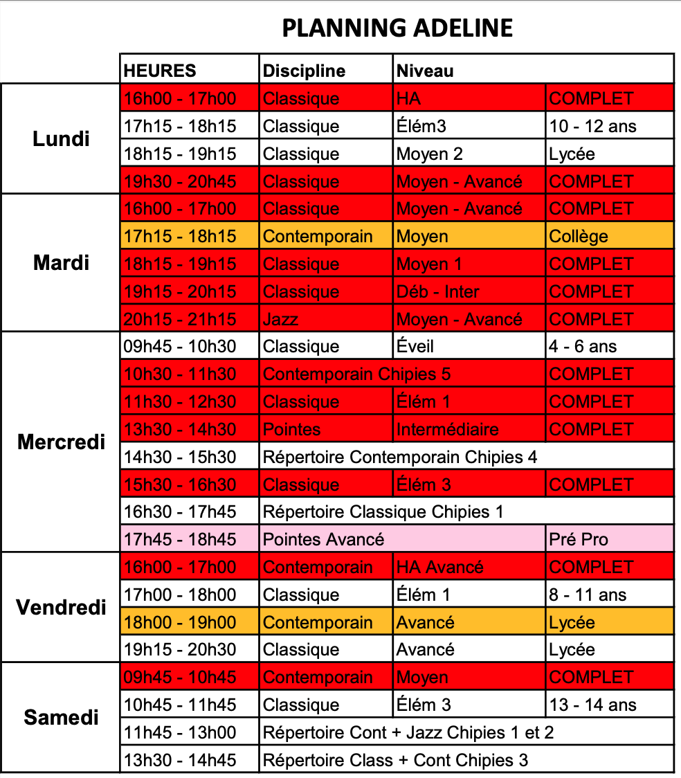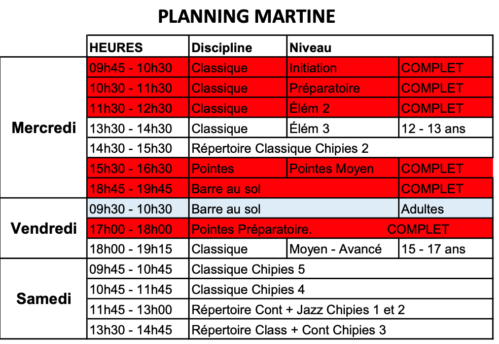 Plannings établis par professeur : Adeline, Martine et Zoé